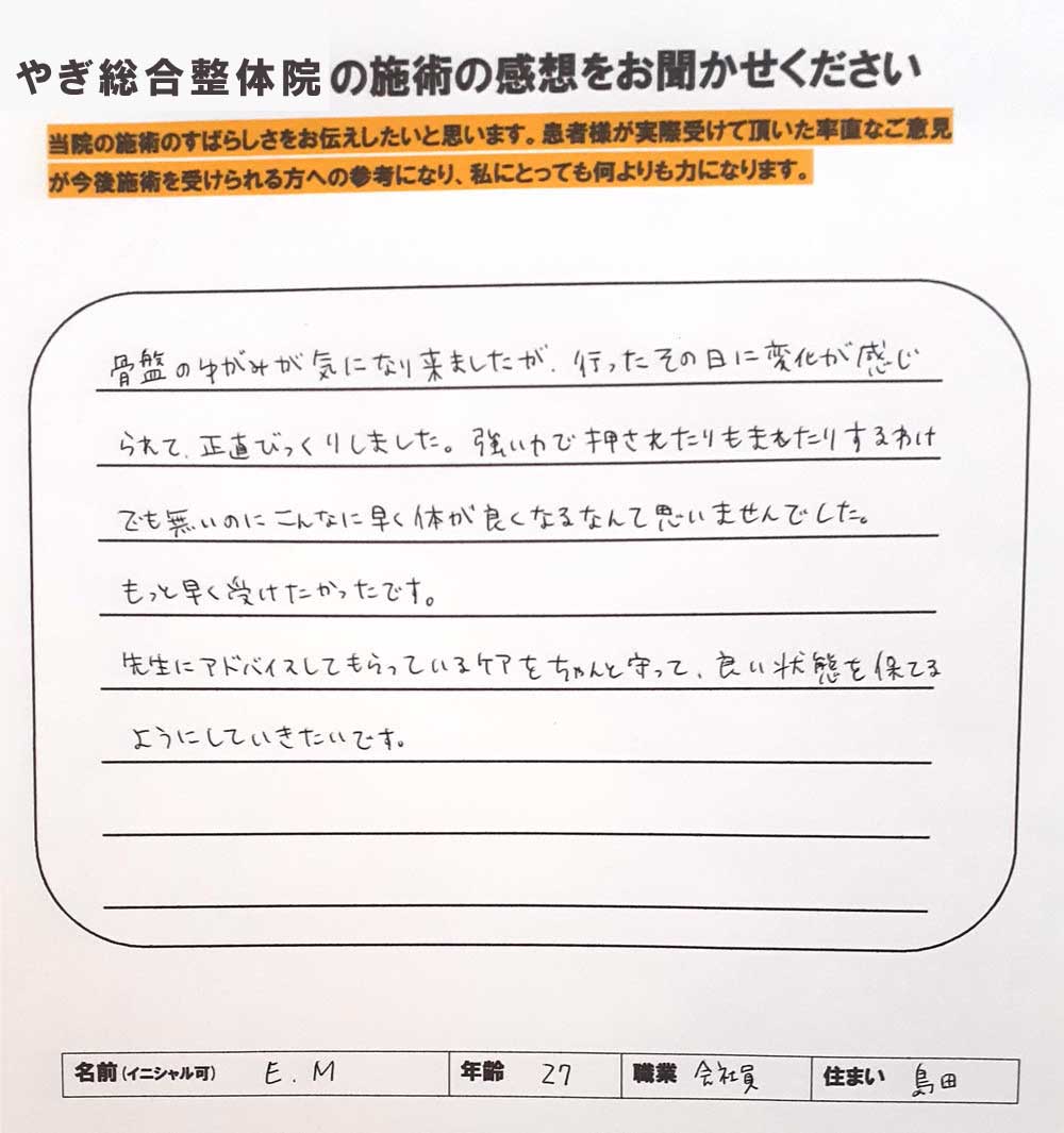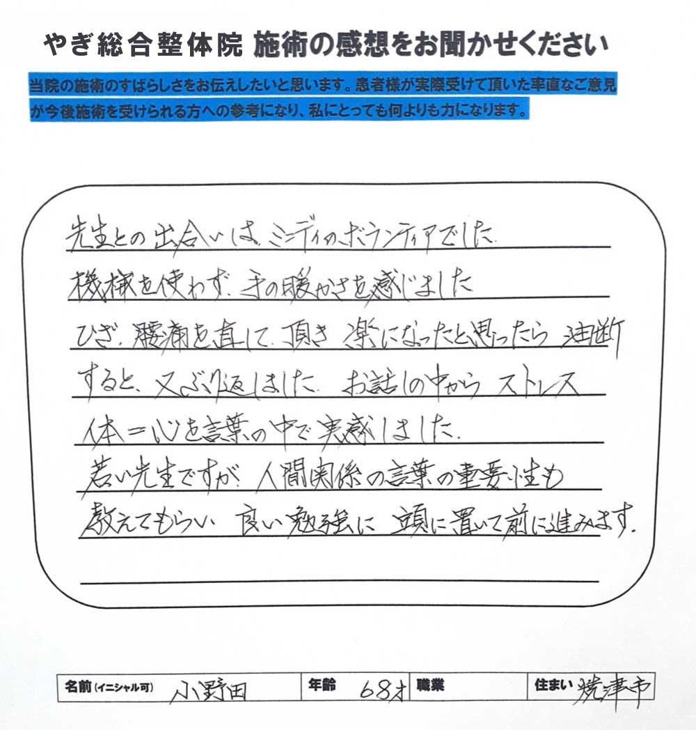 こちらでは、やぎ総合整体院の患者様のアンケートを掲載しております。